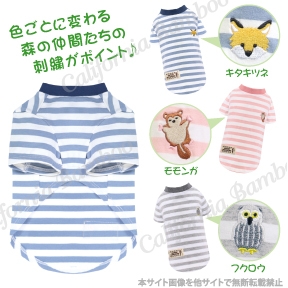 シンプルなボーダーTシャツに、森の仲間たちが可愛いアクセント♪