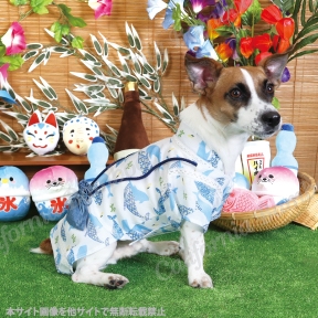 くじら模様で涼し気な装い!夏にぴったりのワンちゃん甚平!
