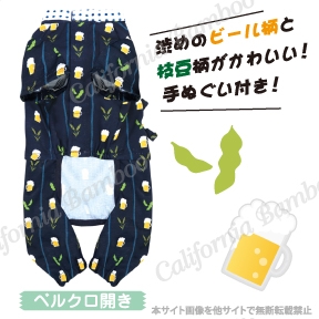 渋めのビールと枝豆柄が目を引く作務衣!