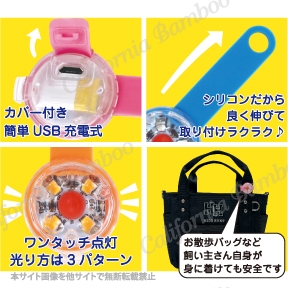 首輪やリード、飼い主様のバッグに取り付けて夜道の安全対策!
