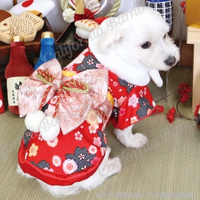 鮮やかな赤とさくら模様がワンちゃんの