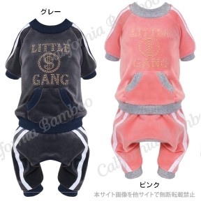 ベロア素材で柔らかい生地のスポーティーなロンパースです。