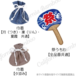 取り外しできる「うちわ」「巾着」が付きます。