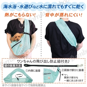 ワンちゃんはもちろん 飼い主さんも涼しく使用できるメッシュスリングです!