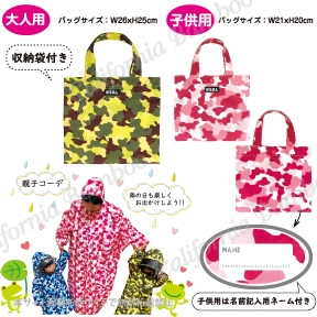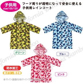 大人向けサイズ F と キッズ向けのサイズの 100,120 で親子コーデが楽しめるレインコート!
