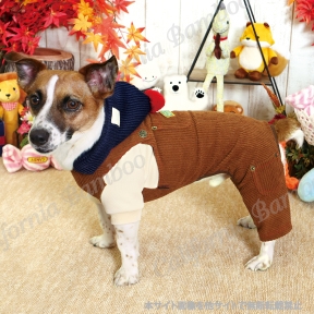 オーバーオールは温かみのあるコーディロイ生地で