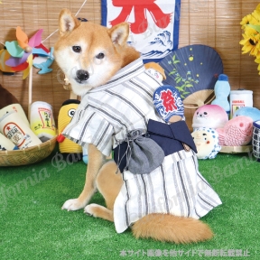 ストライプ模様で落ち着いた大人の雰囲気!夏にぴったりのワンちゃん浴衣!