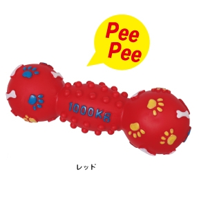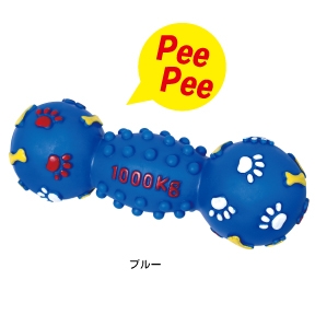 ダンベル型の音が鳴るおもちゃです。ころがりやすく、噛みやすいのでワンちゃんも大満足!